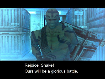 Snake beats the soldiers and gets to the warehouse, where Vulcan Raven has been waiting for him for a while.