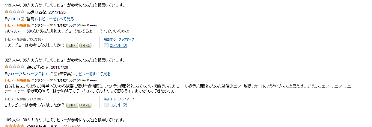 Now you can find the Nintendo 3DS for preorder at roughly twice the retail price, because most resellers are playing with the fact that it will most likely be impossible to get one on the real release day, February 26th in Japan (I’m sure all people who couldn’t get their preorder today are super happy to see that the guy who got the preorder before them was just planning to resell it immediately at twice the price 😛 ). The problem is the same on most retailers’ websites, and this is not surprising. The same happens for the release of each one of Nintendo’s or Sony’s new major console… It’s the first time I see it happening for a preorder though…